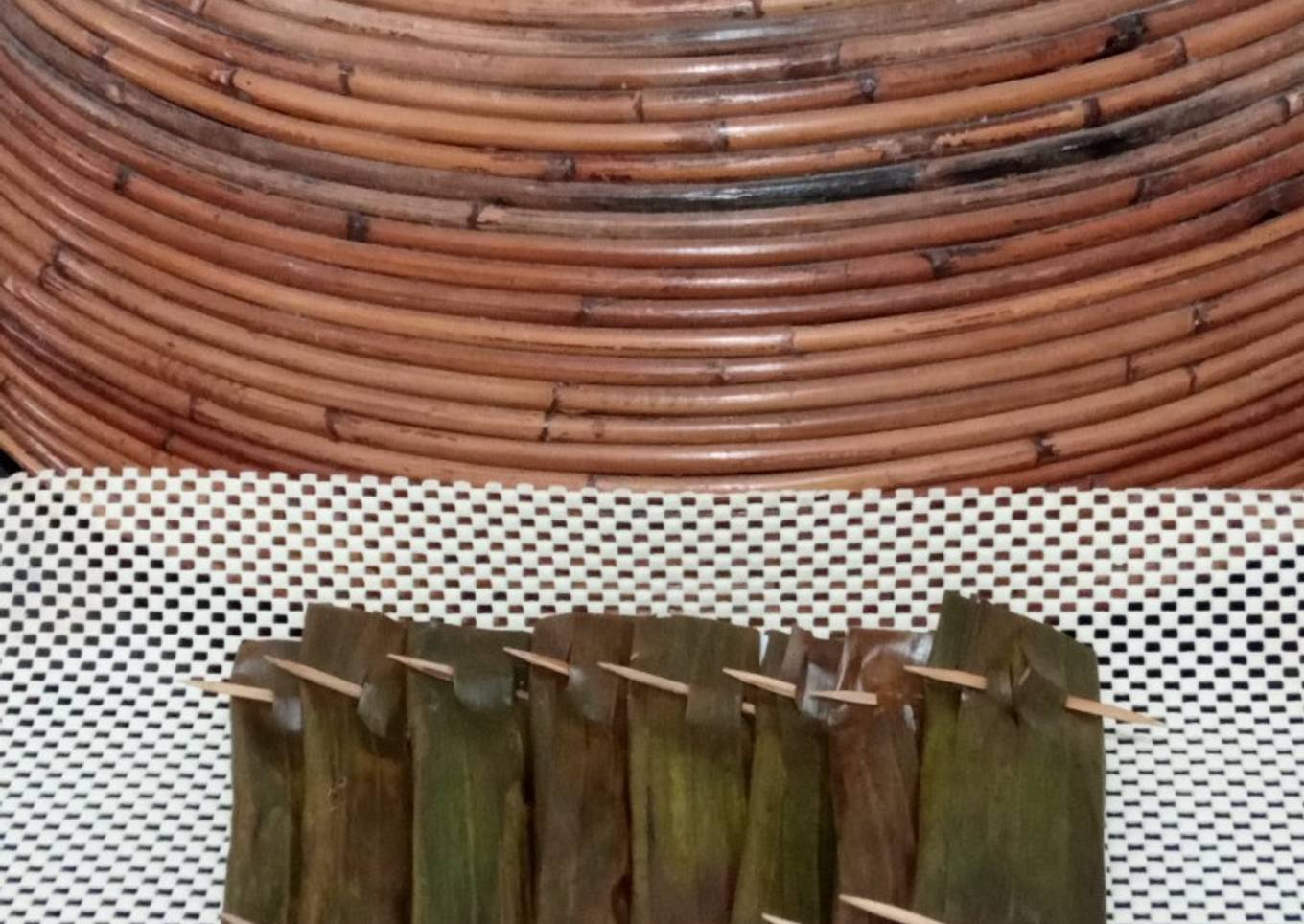 Tgl 4 Juli 2022 beli daun Rp. 5000/ 7lembar: gunakan untuk nasi bakar, bongko pisang, dan terakhir ini otak-otak ikan tenggiri.
