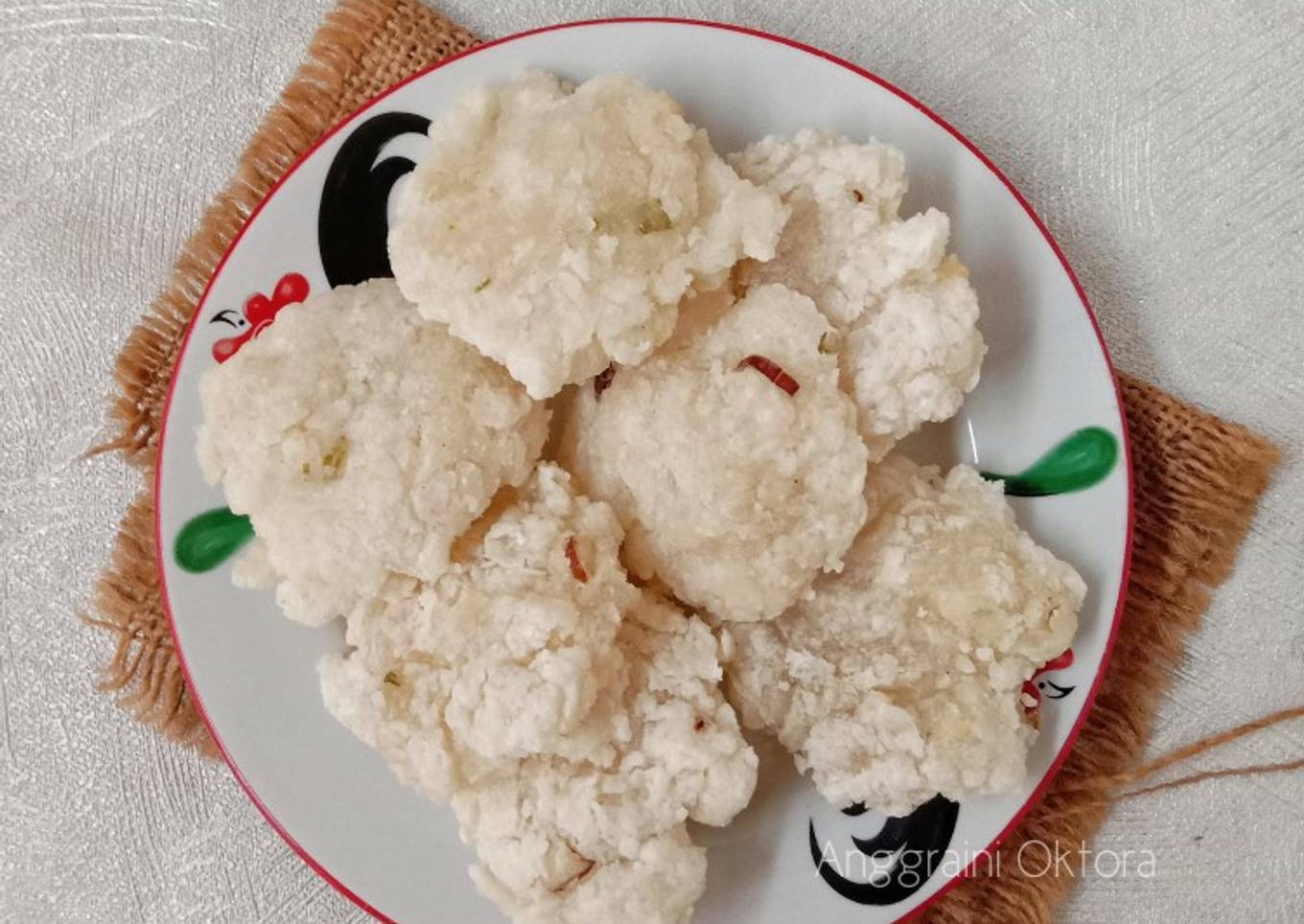 - Ambil sedikit adonan, bentuk bulat pipih, jika dirasa adonan sdikit lengket maka olesi tangan dengan tepung sagu