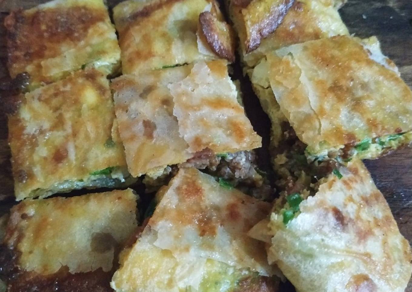 Langkah-langkah membuat Martabak telor isi daging kambing