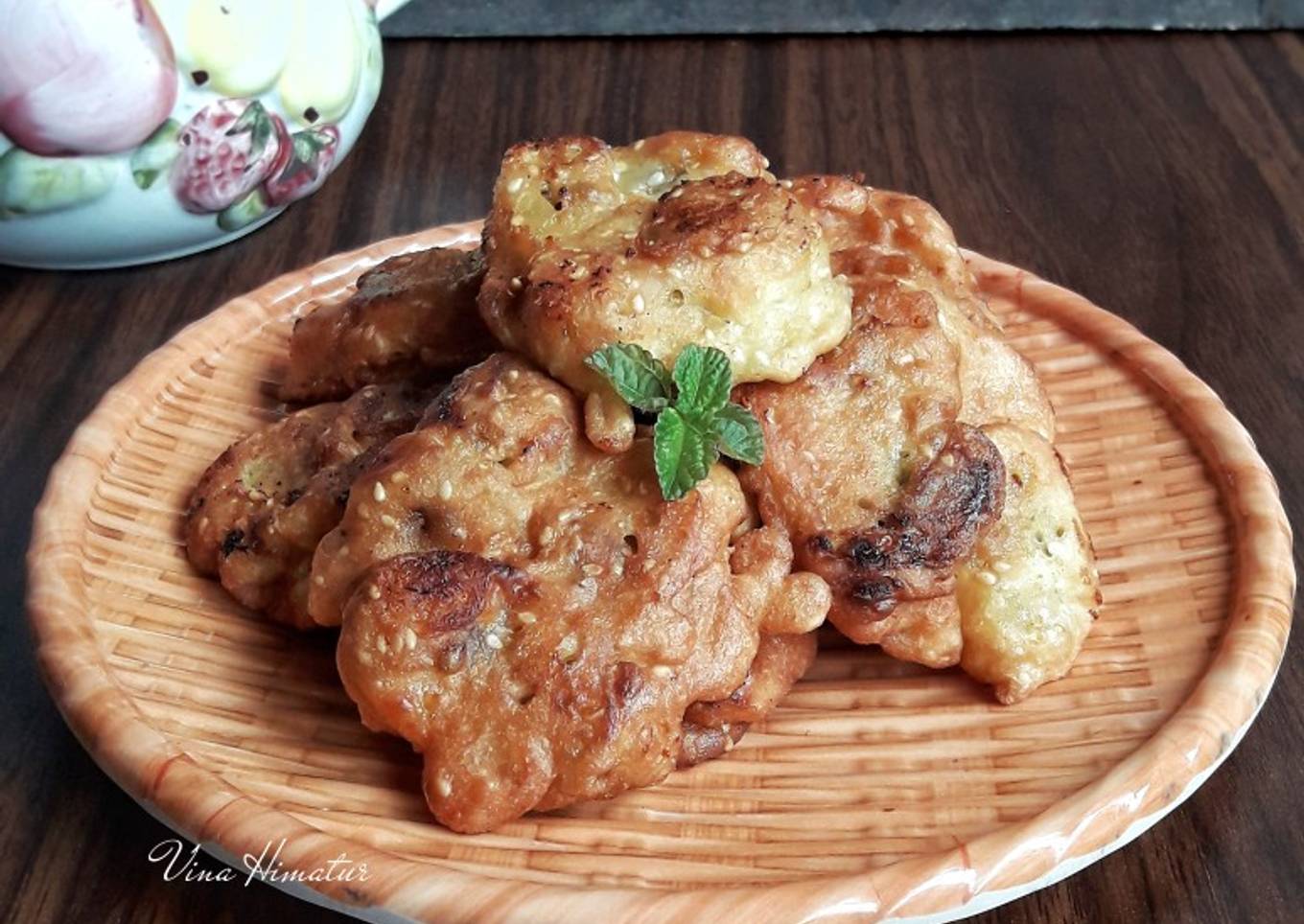 - Panaskan minyak goreng. Ambil 1 sdm adonan pisang. Goreng sampai kuning keemasan. Angkat dan tiriskan. Siap dihidangkan.