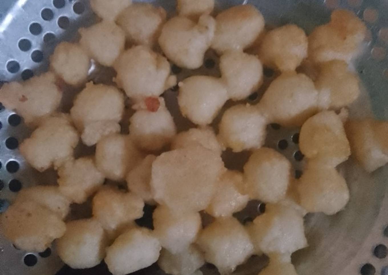 - Goreng cimol seperti biasa (tidak perlu dimulai saat minyak dingin, bisa menggoreng cimol dalam keadaan minyak panas) hingga matang