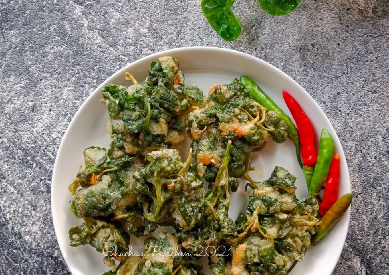 - Uleg bawang putih dan merica. Campur bumbu, tepung dan air. Masukkan bayam brazil. Aduk rata