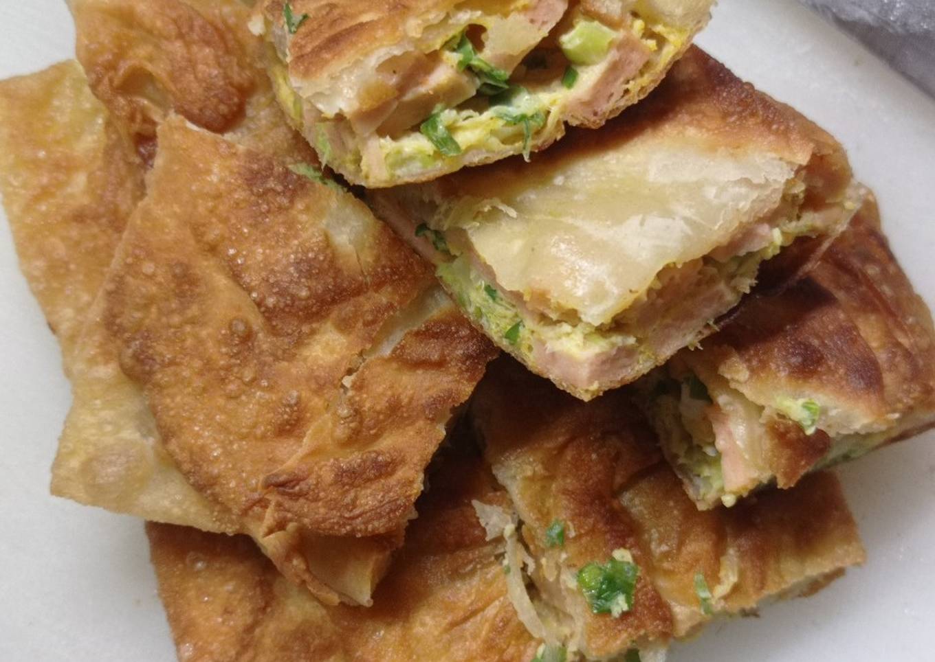 Jadi sebenernya ini resep tortilla, tapi kayaknya kelamaan didiemin jadi melaaar, liat kulkas ada daun bawang, telor, sosis, yoweees bikin martabak telor sisaaan 😆🤪